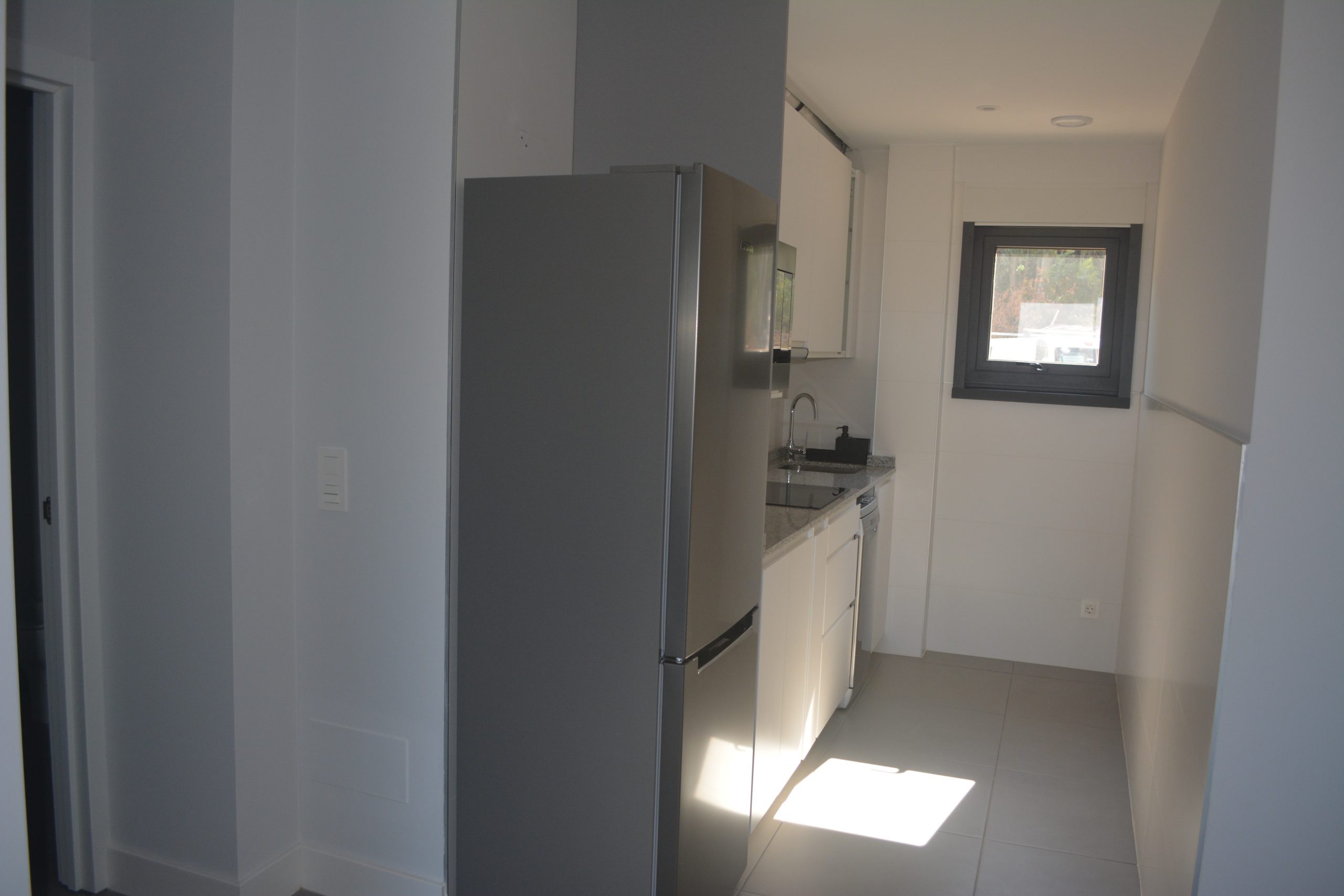 Cocina totalmente equipada con frigorífico, microondas, placa de inducción, campana extractora y lavavajillas.