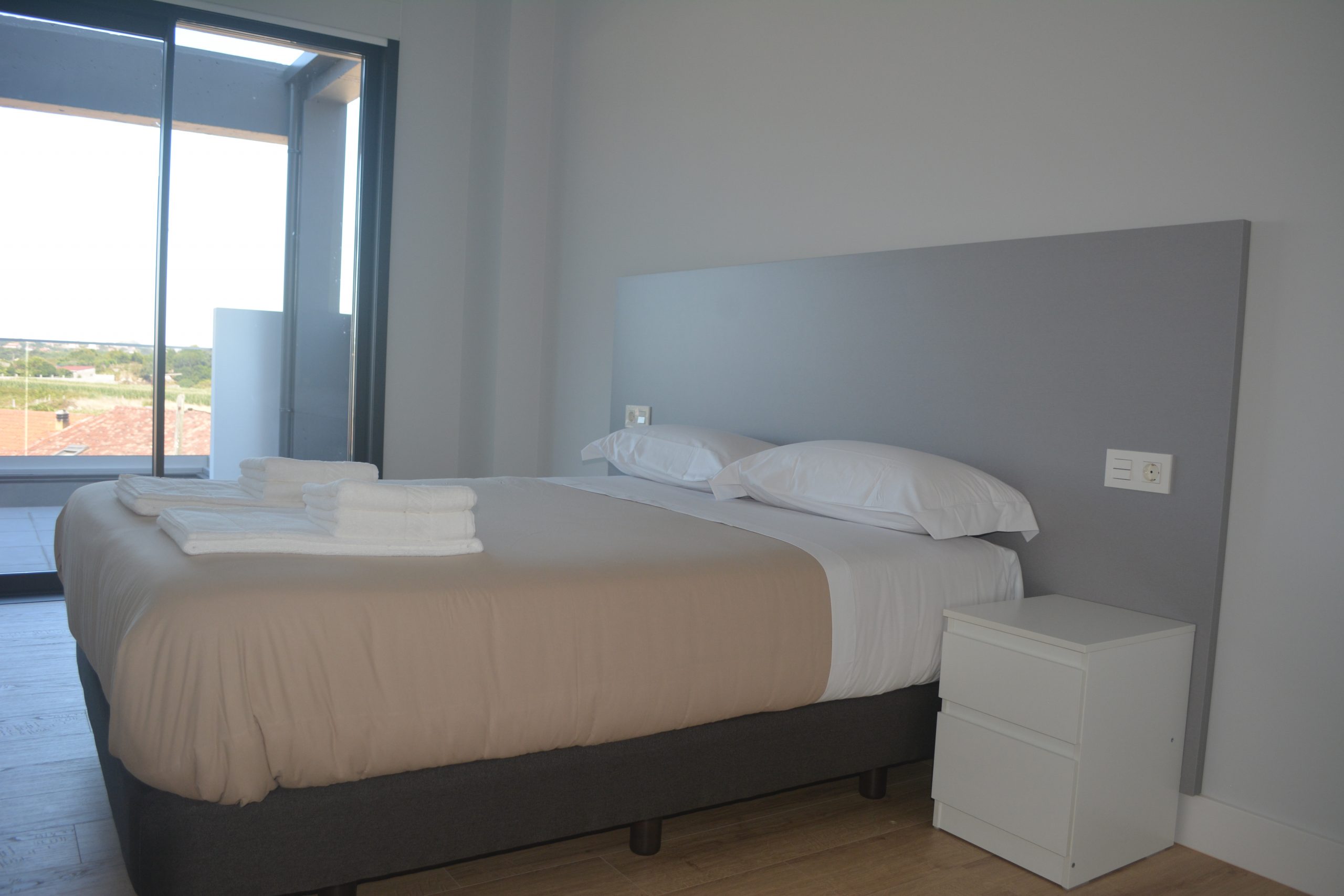 Dormitorio con cama de 1.50, con terraza y vistas.